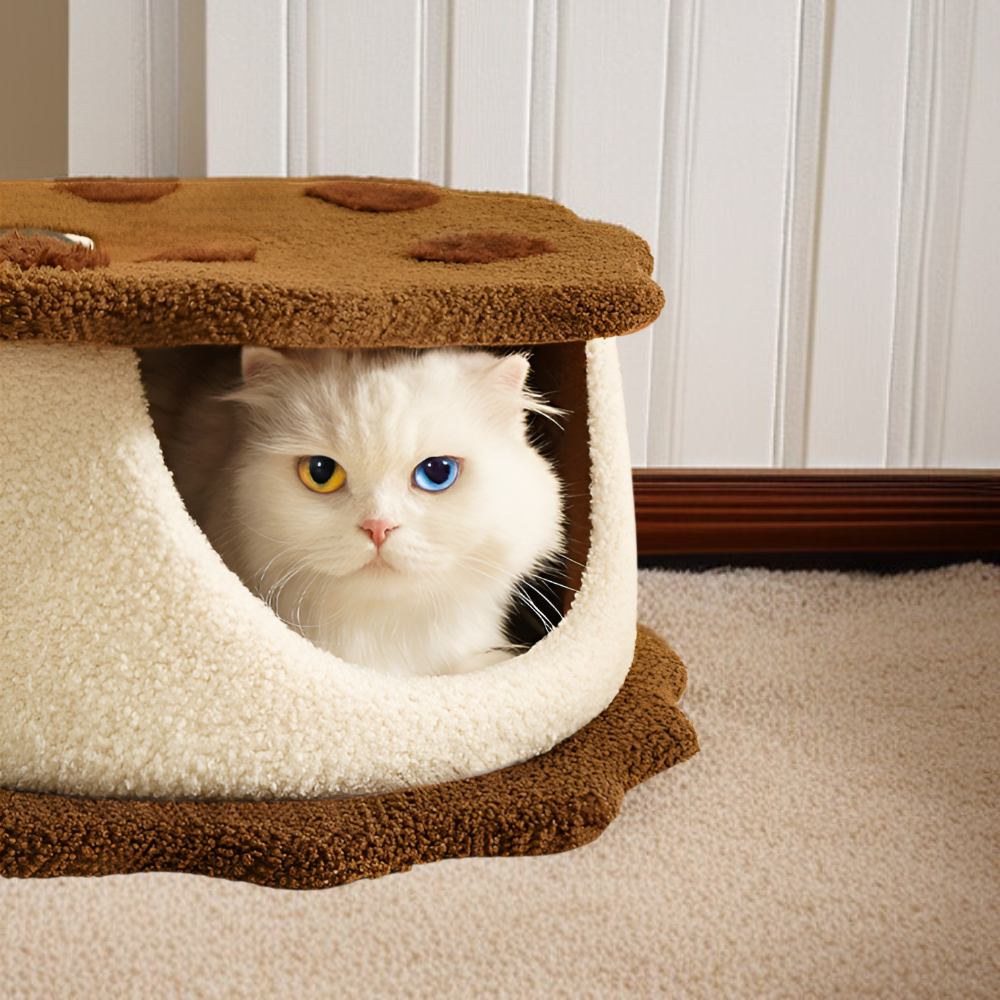 秋冬防寒サンドクッキー型猫ベッド、密閉型ペット用猫ハウス